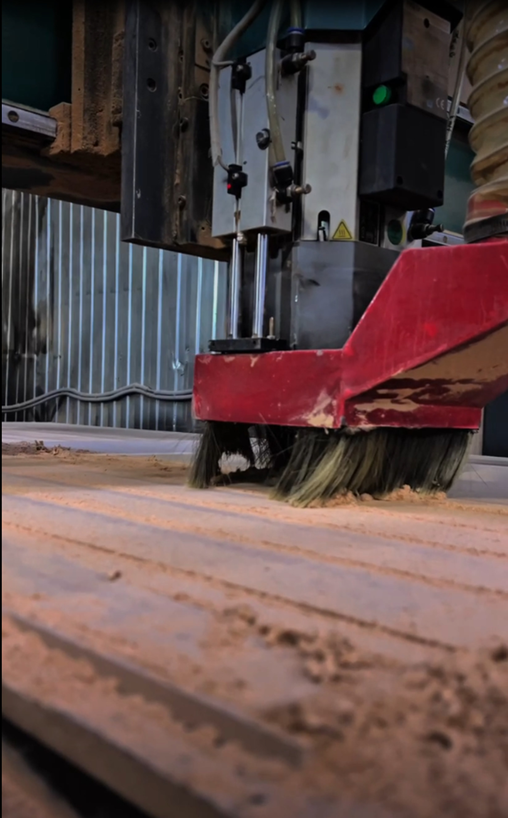 - После фрезеровки, панель нужно обработать путем шлифования,тем самым устранить все шероховатости на поверхности. После наносят распылителем клей, который служит основой для сцепления МДФ и пленки ПВХ.